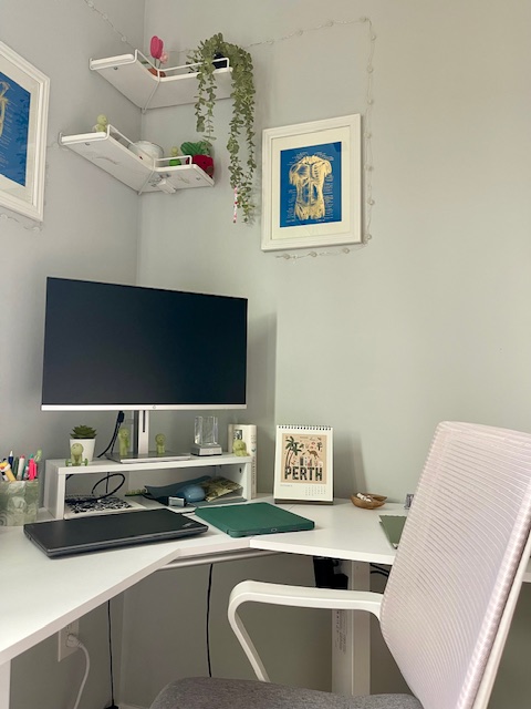 Having a space to do work that makes you comfortable and happy is super important, and honestly, it’s fun to set up! It doesn’t have to be anything extravagant; sometimes it’s as simple as a photo of your pet on the desk, a small plant to brighten the room, or a few knickknacks that make you smile. Anything that makes the space feel a little more like you is worth the investment. Let’s face it, whether you’re watching lectures, writing lesson plans, or mapping out your schedule for the week, school can be stressful. But when you can glance over at that picture of your dog or your favorite souvenir from a trip, it lightens the mood. For me, studying feels a little less intimidating when I’m surrounded by cozy touches: my plants, an adorable calendar, souvenir from my favorite places, a picture of Bailey, and yes, some small pieces of medical decor (typical med student, I know).